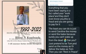 However Ngebani got the shock of her life when someone claiming to be Kambonde’s husband sent her a poster announcing her sudden demise.