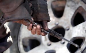 He said while the man was inflating the wheel which he had placed between his legs, the tyre burst and the rim knocked him unconscious.